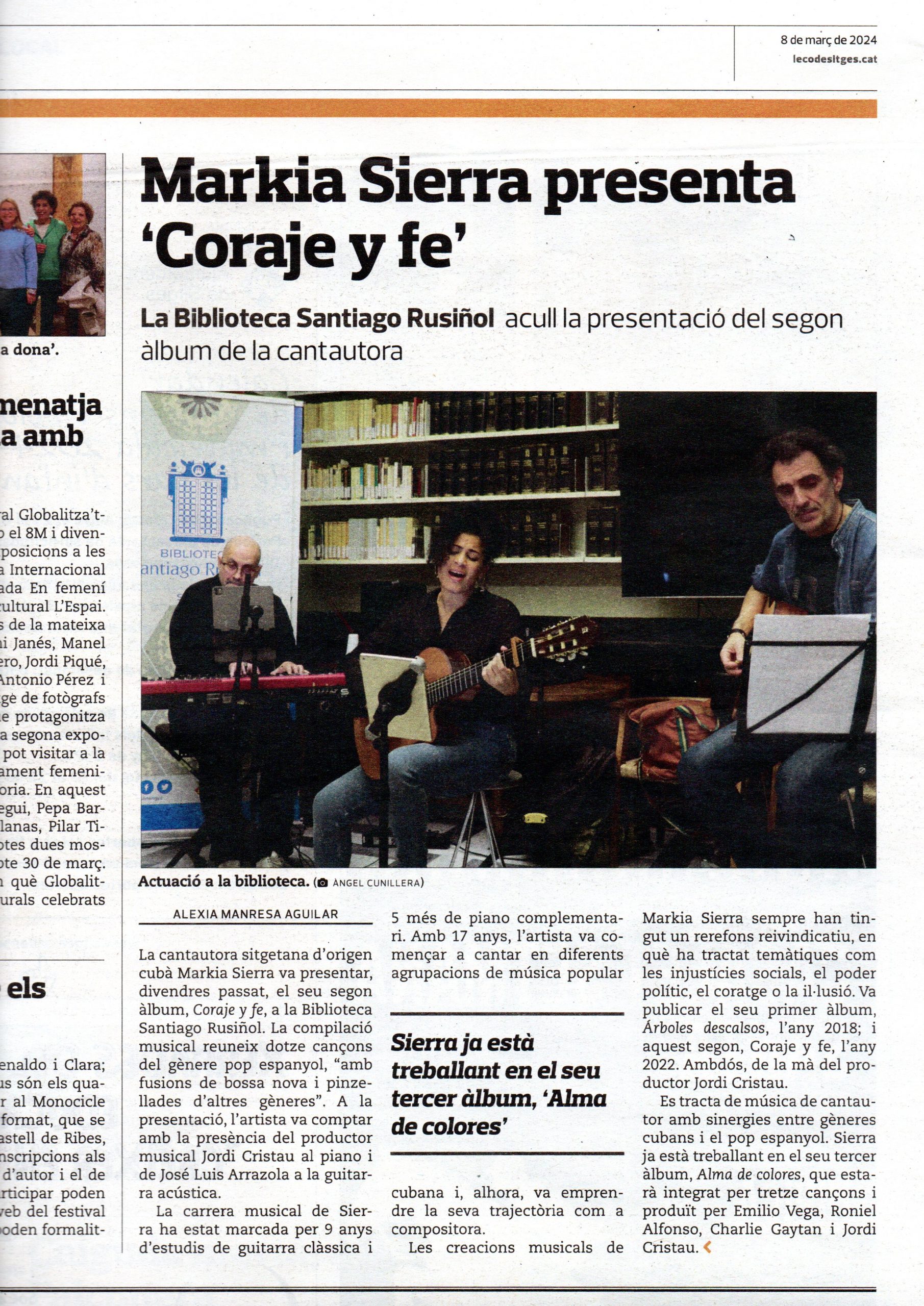 “Les creacions musicals de Markia Sierra sempre han tingut un referent reivindicatiu, en el qual ha tractat temes com les injustícies socials, el poder polític, el coratge o la il·lusió.”